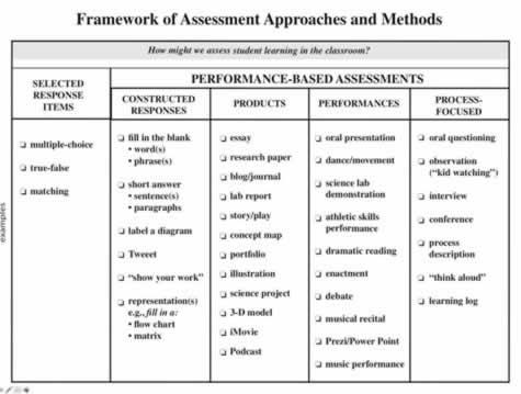 For McTighe, there are many possible assessment approaches and methods, and though no one method is perfect, process-focused assessments, which incorporate features such as oral questioning, observation, learning logs, and more, are preferable.