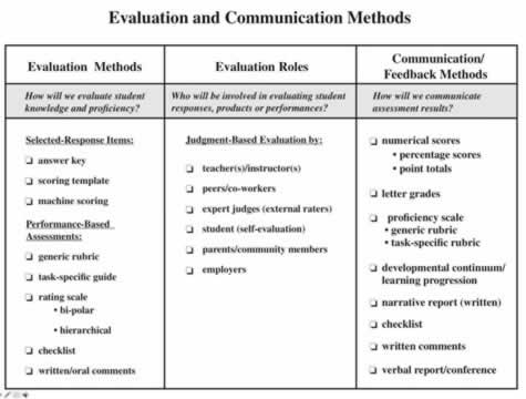 One rubric, developed by McTighe, can help with developing process-focused questions, as it reminds teachers to develop multiple evaluation and communication methods: