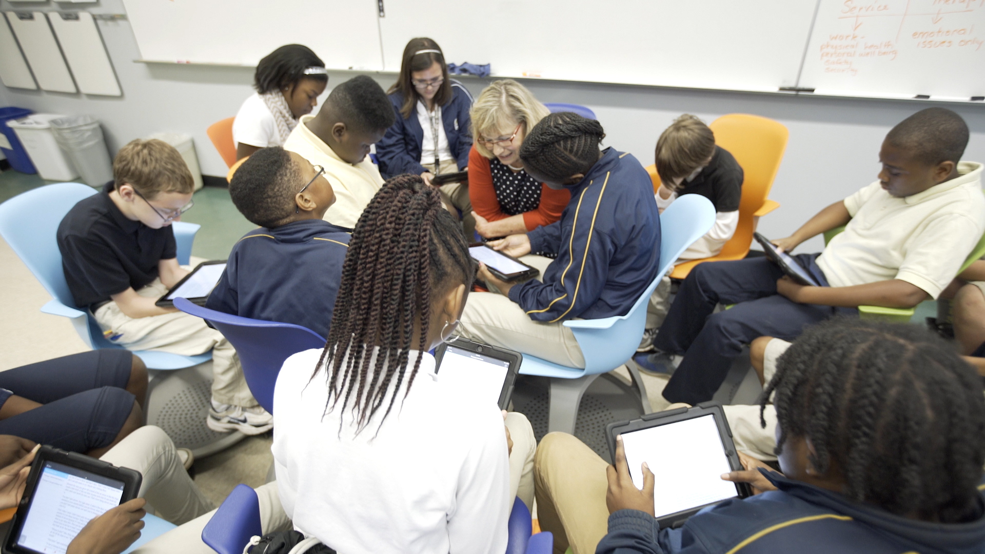 Ours was one of only a few dozen schools awarded similar classroom overhauls through the Steelcase Education Active Learning Center Grant Program. My Saluda Trail 7th graders began class in the new room in 2016, and I have seen growth in three targeted areas: