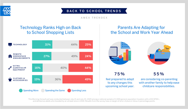 According to the Amex Trendex, a trend report from American Express, consumers surveyed in the U.S. are anticipating spending more time at home this fall as back to school approaches and work from home practices continue. With this in mind, they’re spending to enhance their remote learning and work environments. The majority of consumers surveyed also note they are missing travel right now, and for nearly half of those surveyed, it’s taking an emotional toll, causing increased stress and anxiety.