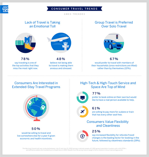 This online poll was conducted by Morning Consult between July 21 and July 23, 2020 among a national sample of 2,000 general population travelers with a household income of at least $70K, and defined as adults who traveled by air at least once in 2019. Results from the survey have a margin of error of plus or minus 2 percentage points.