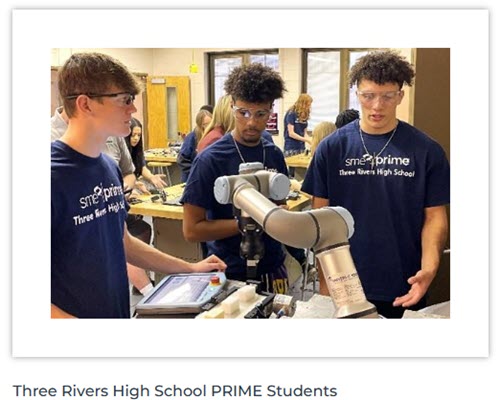 Informed by private industry, SME PRIME (Partnership Response In Manufacturing Education) builds custom manufacturing and engineering programs in high schools across the country, providing equipment, curriculum, teacher training, student scholarships, and funding for extracurricular activities and program sustainability. SME PRIME is tailored to meet the needs of local manufacturers and is aligned with 40 industry recognized credentials and certifications. SME PRIME is located in 110 schools across 23 states, serving 10,000 students, and 91% of SME PRIME seniors pursue manufacturing post-graduation.