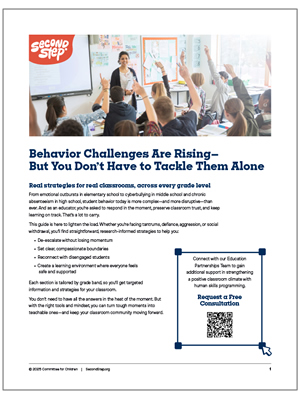 To promote classroom behavior that supports student learning, educators need proactive, practical strategies. The Second Step® behavior mitigation guide ... Read more